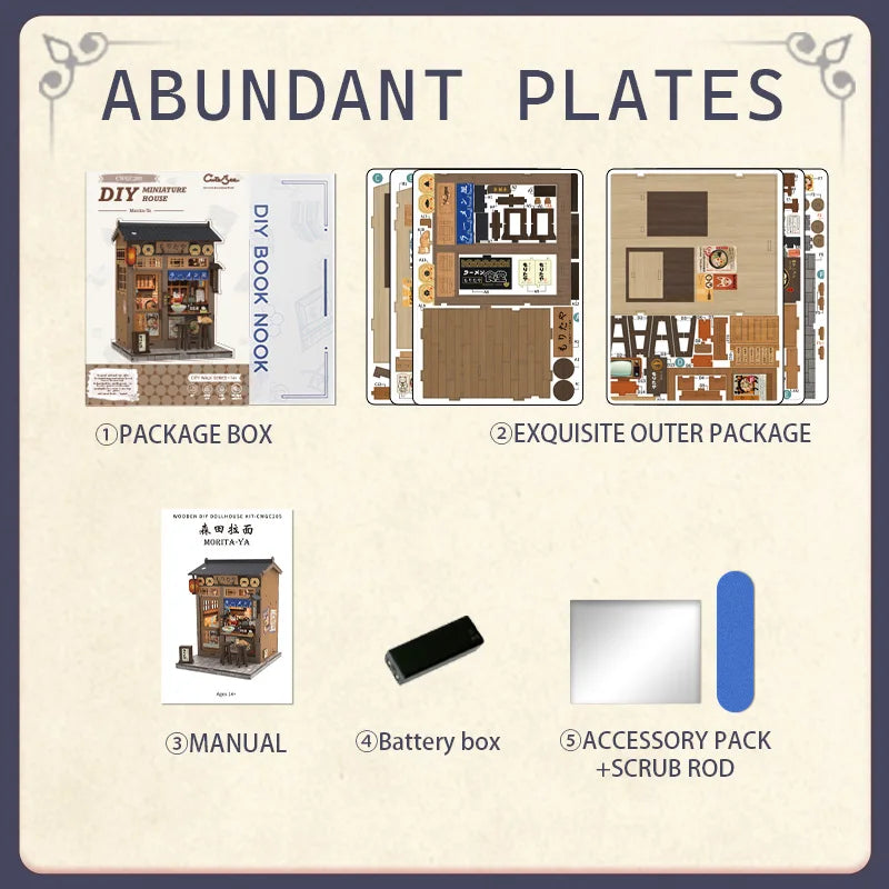 CUTEBEE Book Nook Kit DIY Doll House with LED Light Bookshelf Insert Amazing Gift for Child Morita-Ya Japanese Style